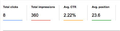 You can then track your website’s overall position and performance over a period of time. For instance, the number of total impressions, clicks, and avg. CTR should increase over time. And the avg. position should decline.