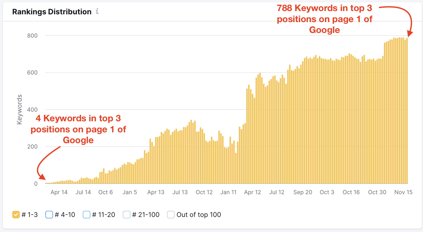 Furthermore, a robust off-site strategy was implemented to fortify the site’s authority and credibility. This involved a consistent acquisition of over 200 backlinks per month from diverse sources. These included citations, strategically positioned press releases, and blog posts sourced from nationally recognized press entities, as well as local and smaller publications.