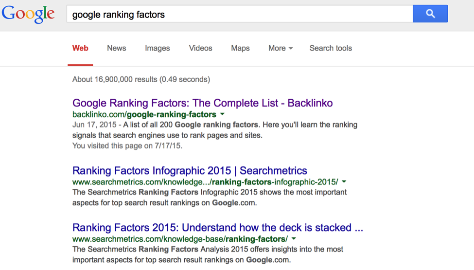 The second and third result for the keyword “google ranking factors” have the year 2015 in them. Do you think they will still be receiving traffic in 2016 or, say, 2017?