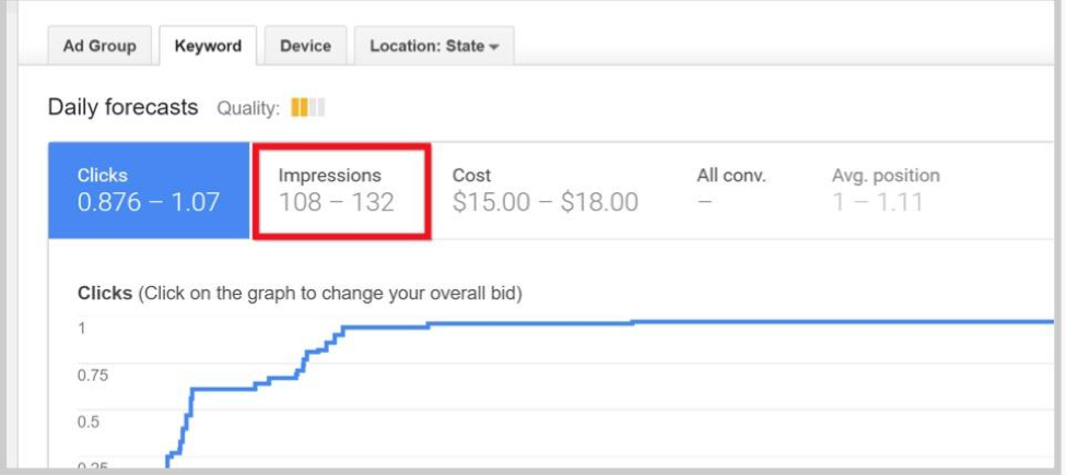 Google will then show you the number of “impressions” you’d get in this scenario.