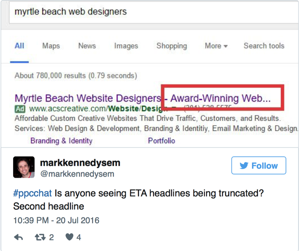 ETAs or Expanded Text Ads allow advertisers to have 2x longer headlines in Google AdWords ads. However, as more and more people started using ETAs, they noticed that sometimes the headlines are being truncated.
